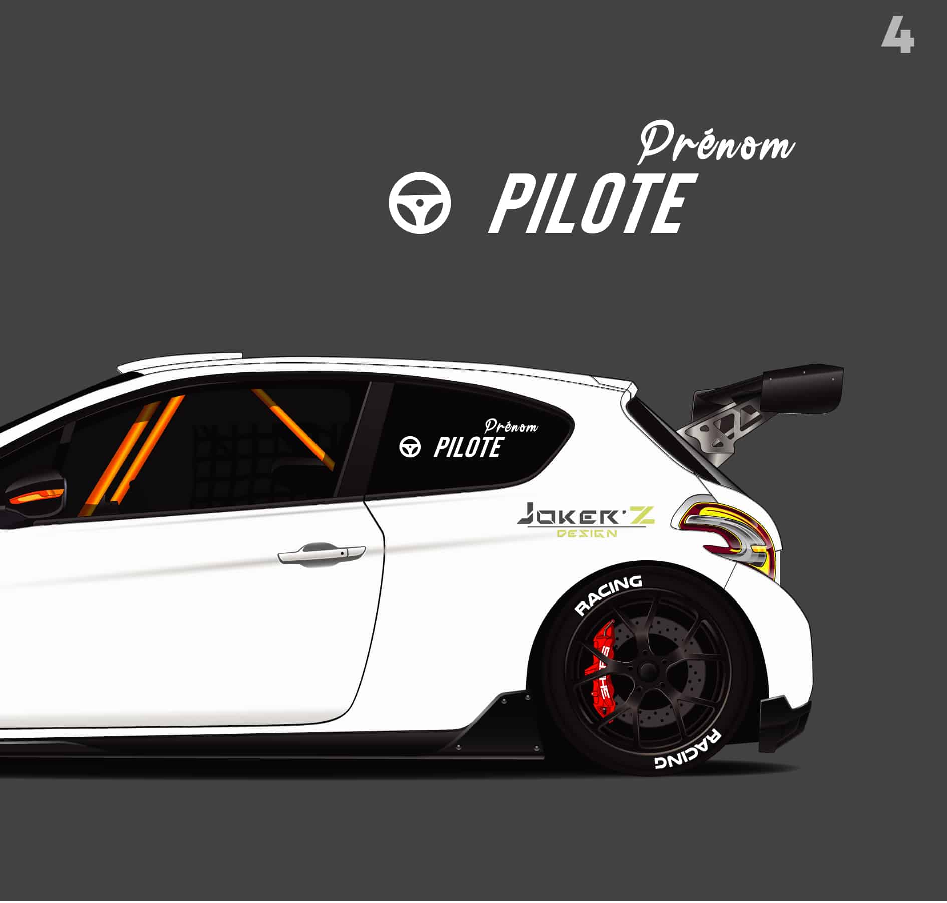 Affichez votre nom sur les vitres de votre véhicule de course.